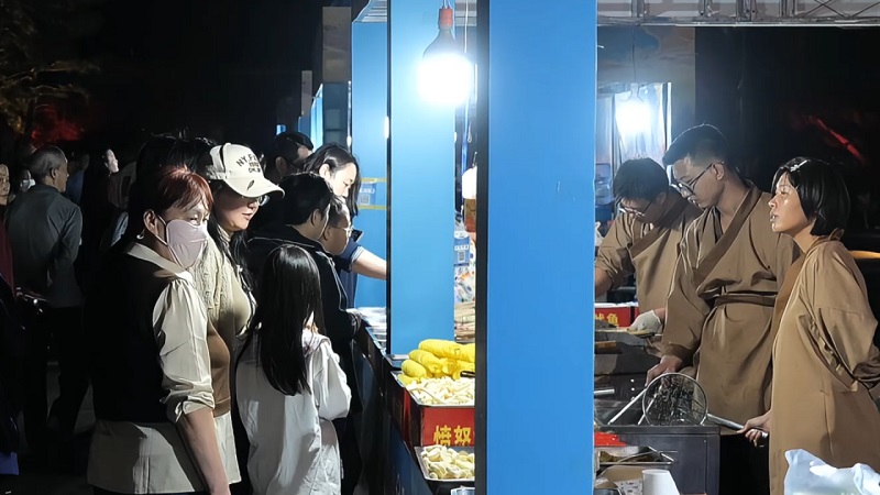 本次文化旅游節(jié)活動自10月1日持續(xù)至10月5日,活動期間設(shè)置了主題鮮明、層次豐富的特色內(nèi)容。每日10時,來自中華泰山·封禪大典的演藝團隊以《萬國來朝·盛世啟市》主題演出拉開序幕。天鼓初鳴之際,悠遠號角與鏗鏘鼓點交織共鳴,依次呈現(xiàn)開場迎賓禮、司禮官肅穆登場、舞姬書生伴唐宮人物(李治、武則天)盛裝巡游。巡游結(jié)束后,演員們將化身隱藏NPC,身著唐宮華服扮演“帝王”“貴妃”等角色,與游客展開對詩猜謎、合影互動等環(huán)節(jié)