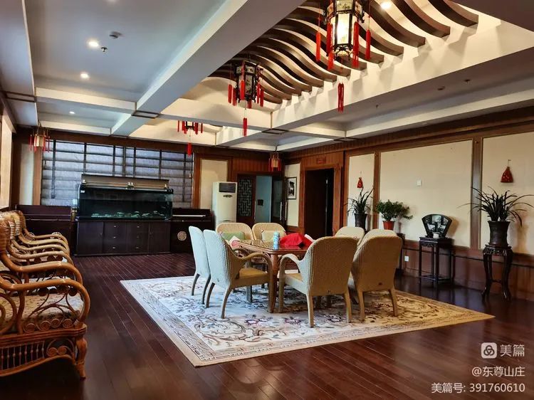 庭院建筑面積達(dá)2299平方米,二十世紀(jì)三十年代曾為民國將領(lǐng)韓復(fù)榘居所,五十年代命名為中天門賓館,后更名為中溪賓館,1996年改名為東尊山莊。